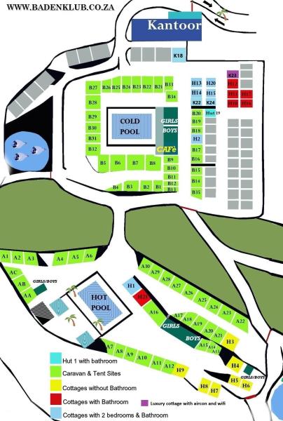 Baden Klub is holiday resort 10km outside Montagu, is a club for members with the provision for non-members to book, except during Easter and December School Holidays, which is exclusive to Club members. It comprises of 68 camp sites (caravan and tent) and 24 self-catering chalets.